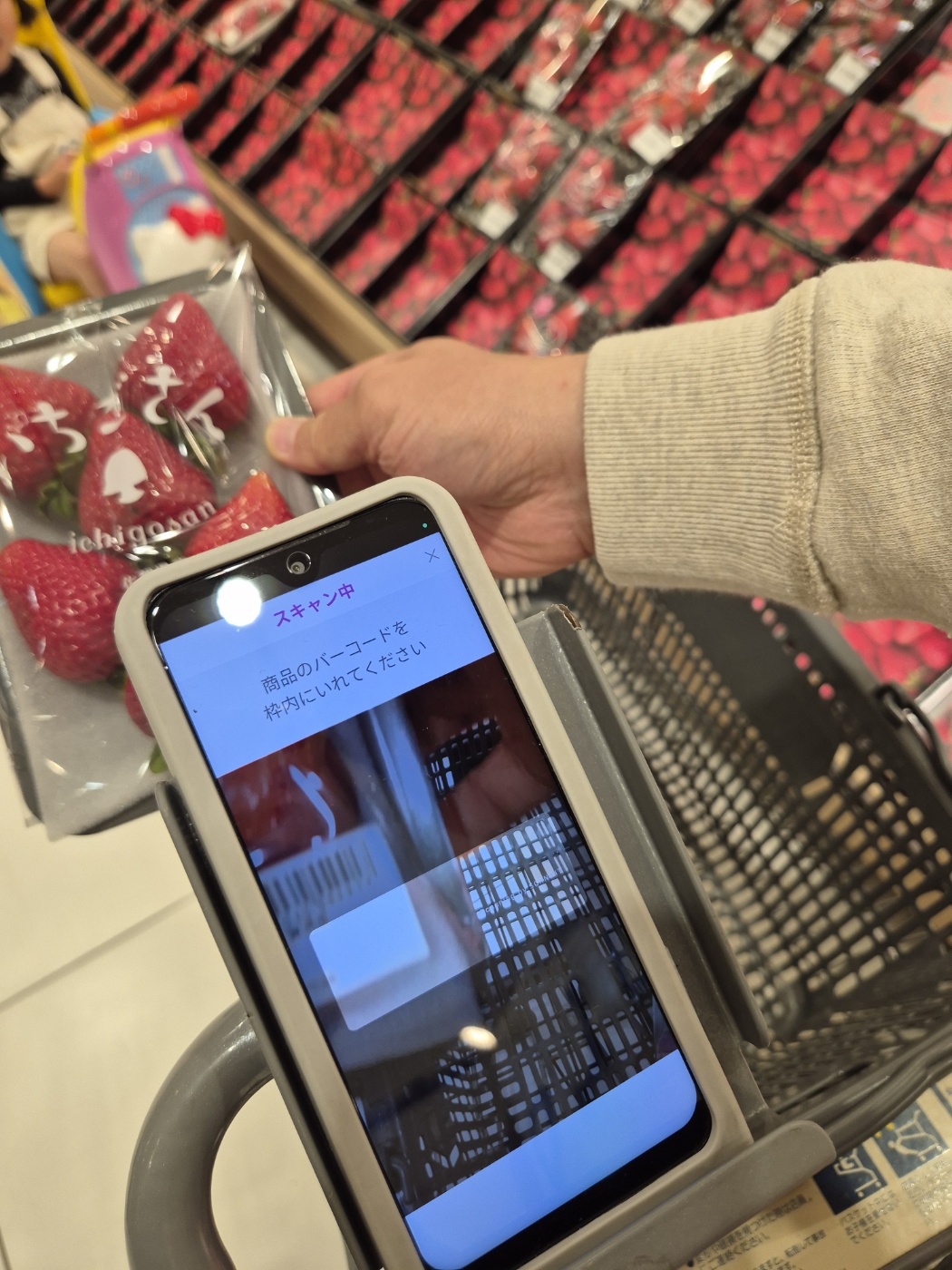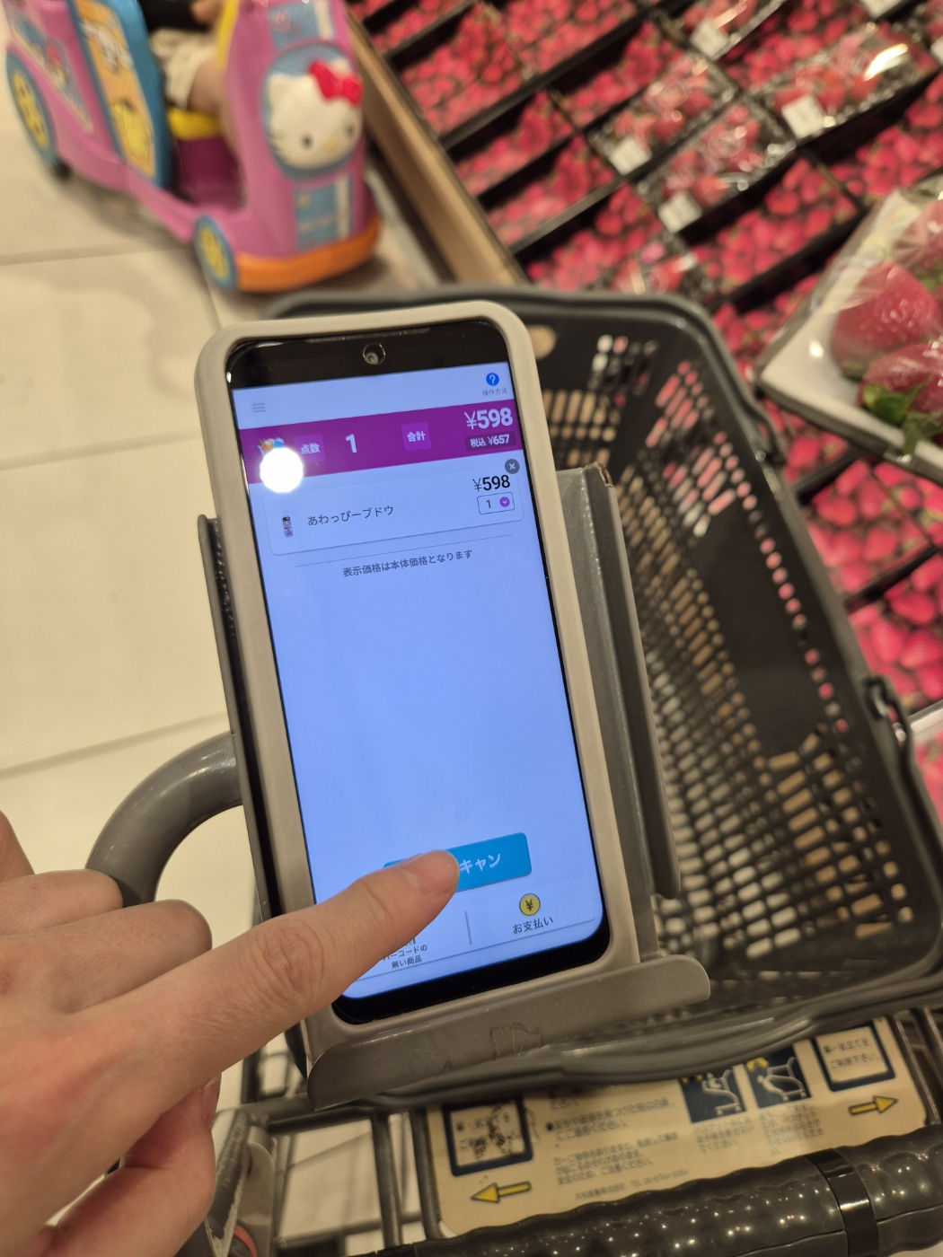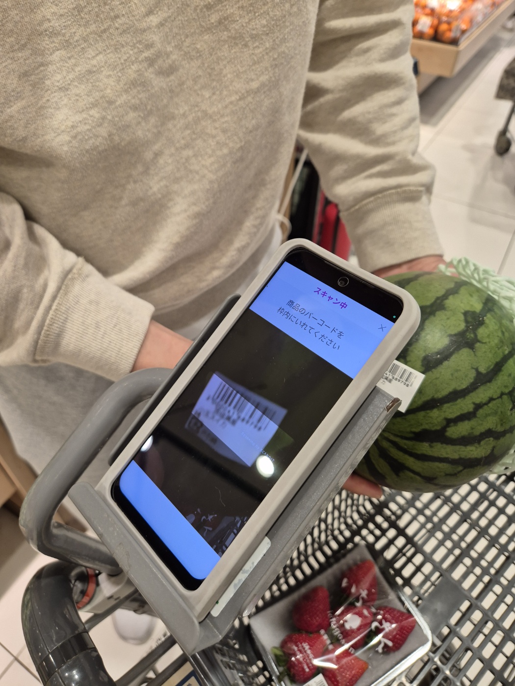 쇼핑하는 동안 직접 바코드를 찍고, 마지막에 셀프계산대에서 한 번에 결제하는 방식이에요.