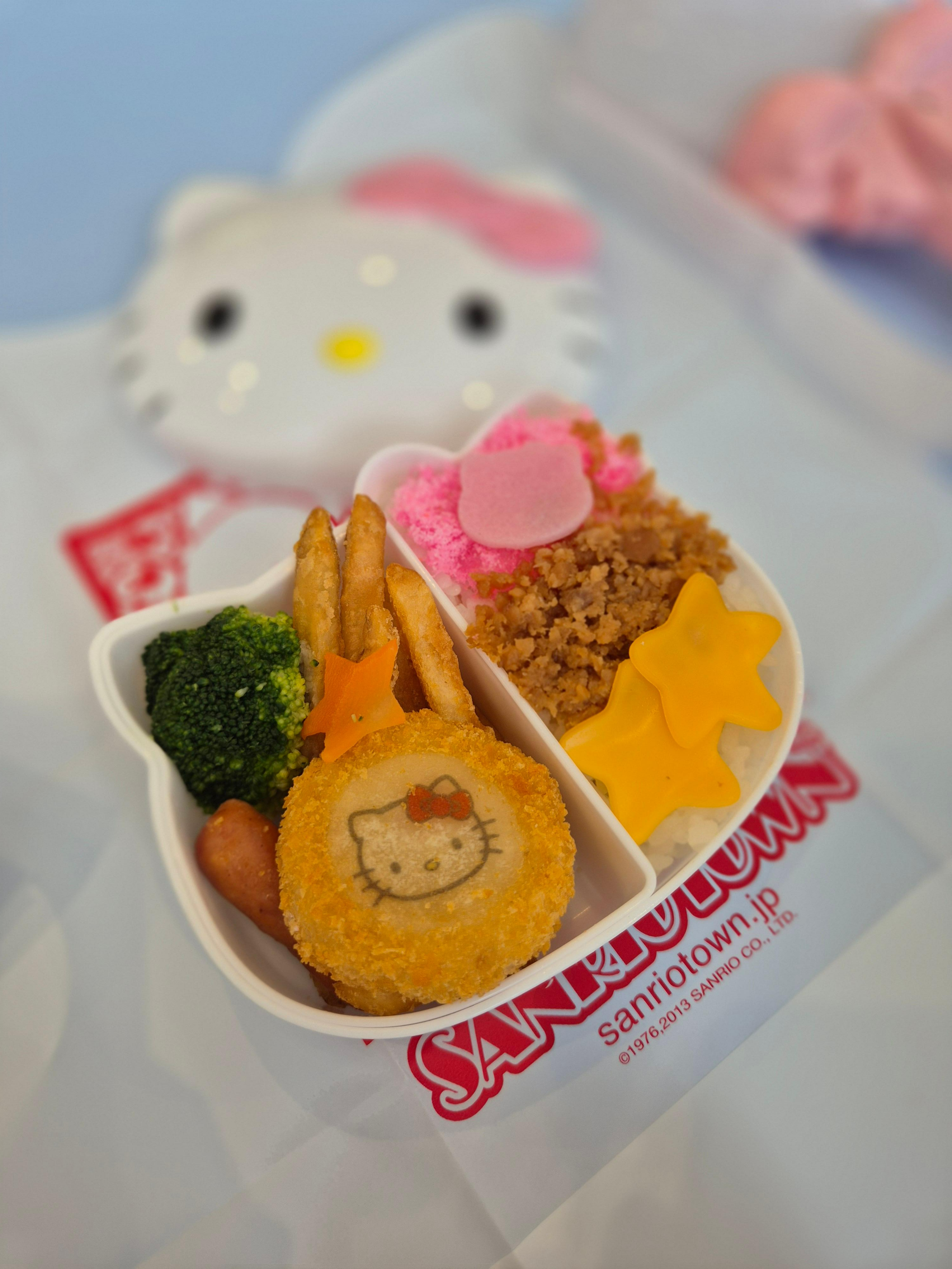 아이 메뉴로 주문한 키티 도시락은 벤또 케이스를 재활용할 수 있어요!