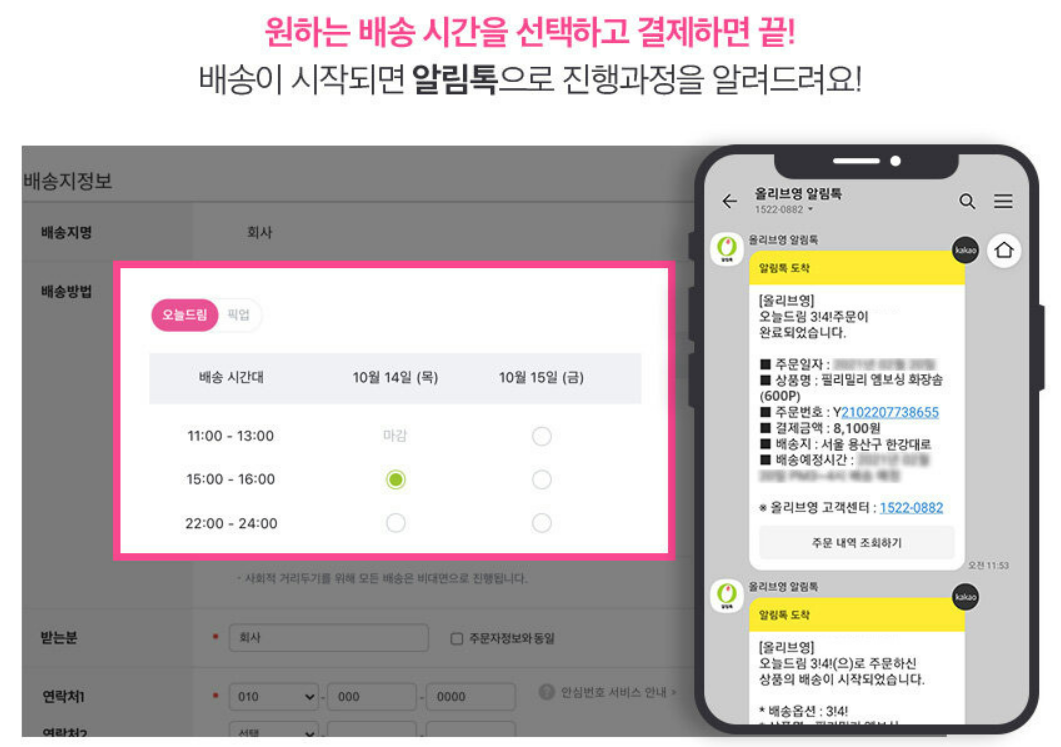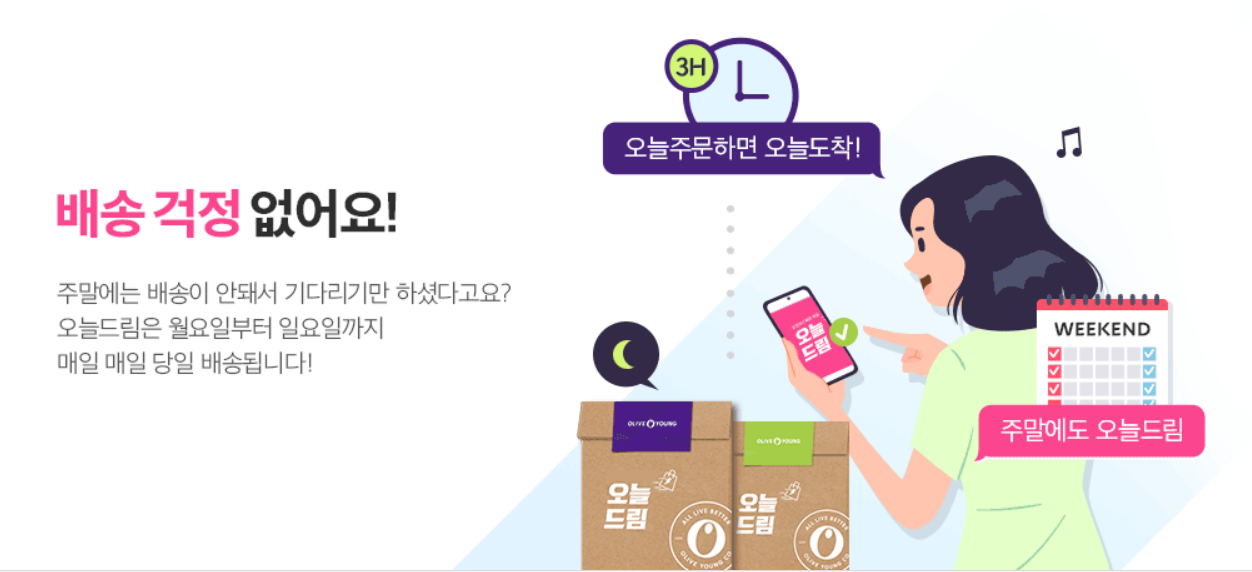 가장 먼저 떠오르는 서비스가 바로 '올리브영 오늘드림'이죠.