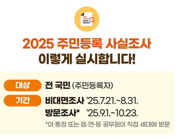 - 동네 이통장·공무원 방문조사: 9월 1일 ~ 10월 23일