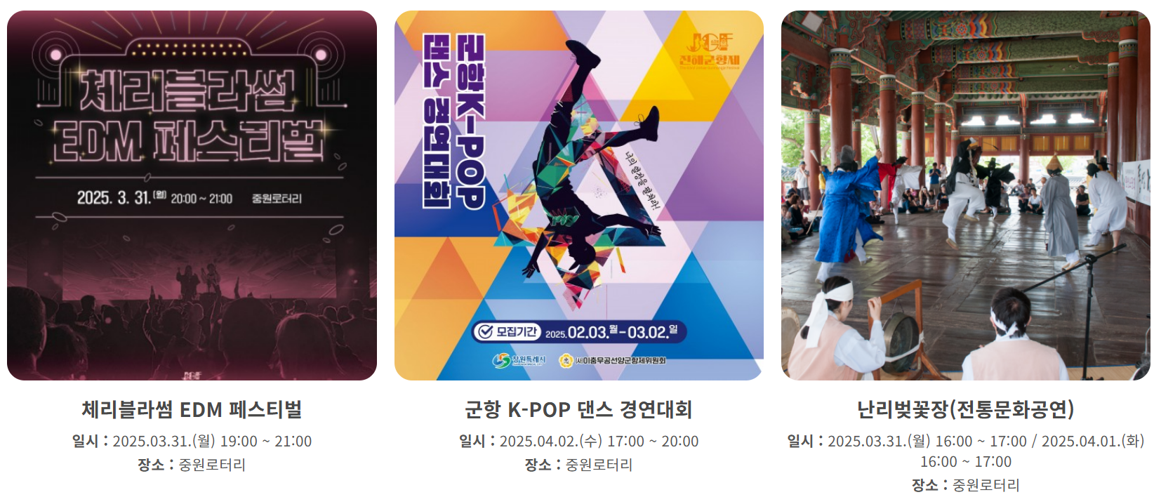 | 4/2 | K-POP 댄스 경연대회 | 중원로터리 |