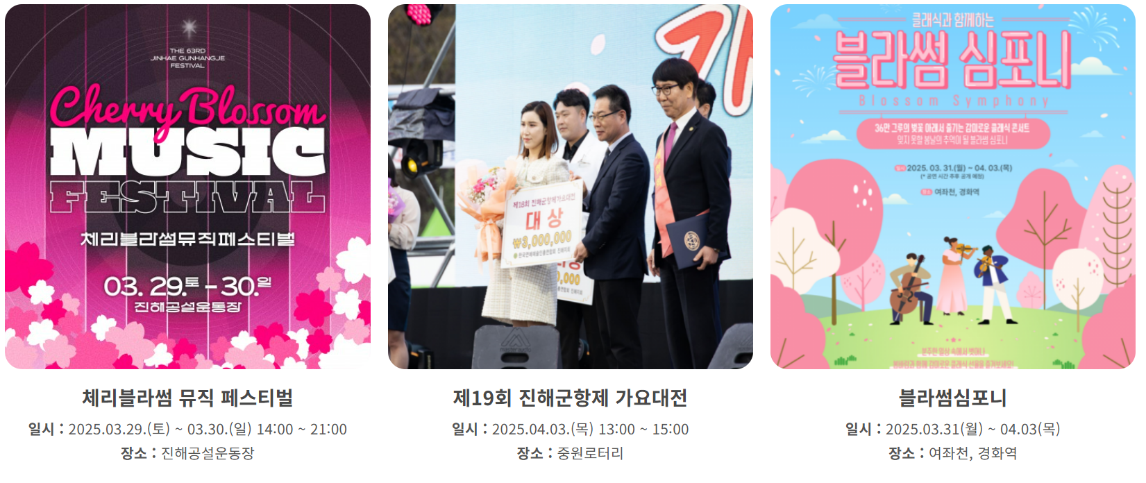 | 3/29~30 | 체리블라썸 뮤직페스티벌 | 진해공설운동장 |